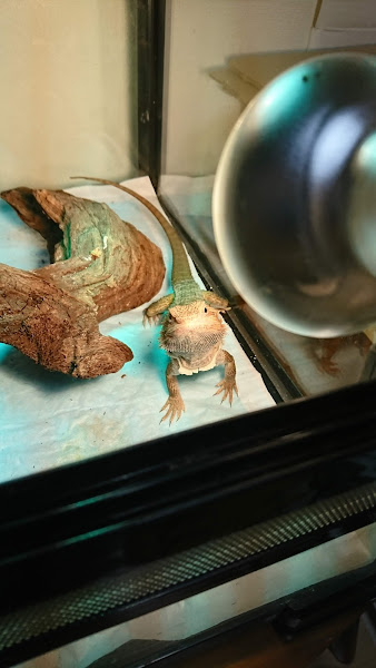 お店でのロティとの出会いはとてもフレンドリーなものでした。フトアゴを始め、爬虫類は基本的には犬や猫のようにわかりやすく人間に懐くという事はないと言われています。しかし、ロティは出会ったその瞬間からとても人懐こいというか人間を恐れる様子がなく、手にのせると逃げようとするどころかひょいひょいと肩までよじ登り、背中に回り込み…と積極的なスキンシップ(?)をぶちかましてきたのです。
